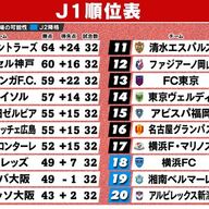 | 【J1順位表】19位湘南は“泥沼7連敗&17試合勝利なし” 東京Vは残留に前進の勝利で暫定14位浮上 …4日) ◆新潟 - 岡山(デンカビッグスワンスタジアム、4日) ◆福岡 - 横浜FC(ベスト電器スタジアム、4日) ◆広島 - 町田(エディオンピース… (出典:日テレNEWS NNN) |