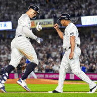 | ジャッジ 同点3ラン&走者なしからの申告敬遠など3安打4打点3得点の大活躍 1勝2敗で第4戦へ ◇ア・リーグ 地区シリーズ第3戦 ヤンキース9―6ブルージェイズ(2025年10月7日 ニューヨーク) 敵地でブルージェイズに連敗し、地区シリーズ突破に王… (出典:スポニチアネックス) |