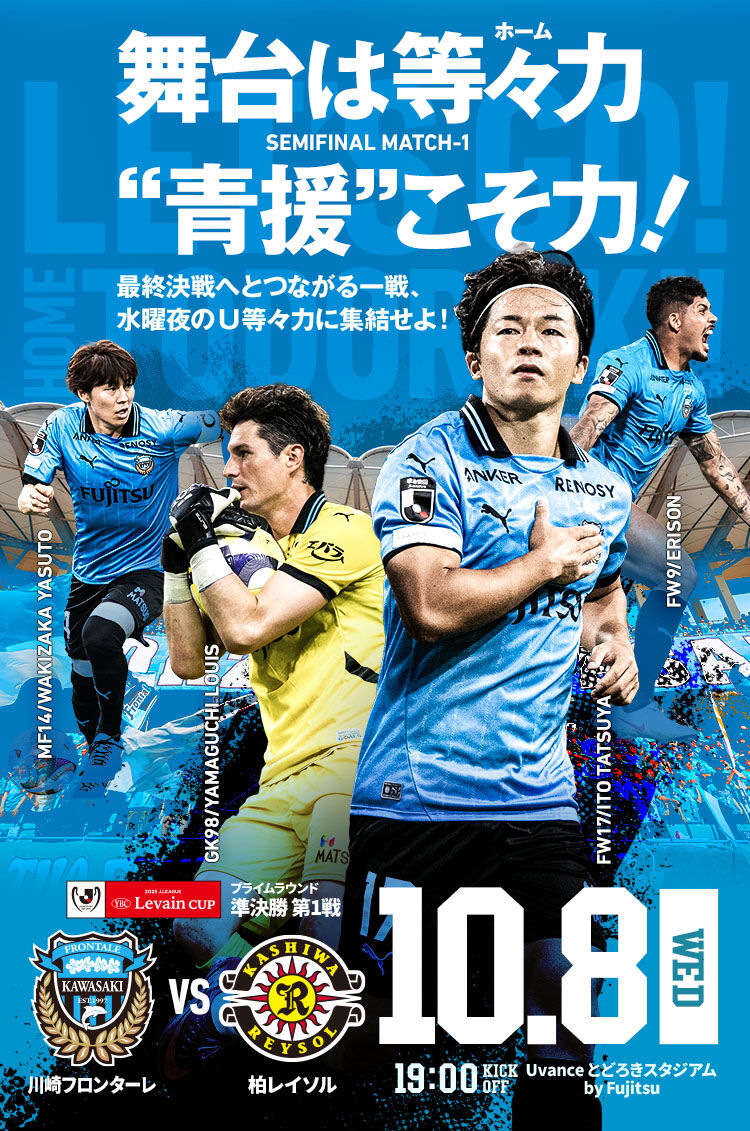 @frontale16KBG本日のルヴァンカップ準決勝 柏レイソル戦1stレグは、3-1で川崎が勝利しました。10/12(日)の2ndレグを2点リードした状態でスタート出来ると考えるとわかりやすいかと思いますが、細かい事を考えずに次も勝って、みんなで11/1(土)国立での決勝に行きましょう!次も応援よろしくお願いします!🐬 pic.x.com/Z6mC0pyFxR
