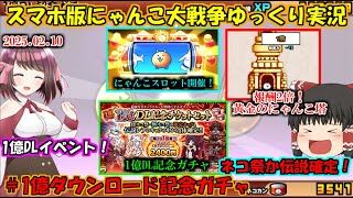 @nizineko_XD1億ダウンロード記念きました! ネコ缶1000個異常もらえるうえにガチャ割引されるのは太っ腹すぎますね😮 あ、11連回しましたが、ねねこしか出なかったです。 まぁ...はい... #にゃんこ大戦争 pic.x.com/8mPXI7X0ez