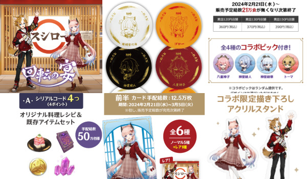 @shimapatobuスシロー『原神』コラボ第二弾!観月の宴が2025年9月に開催!限定グッズ、おまけがもらえる!ピック、メタリックカード、ミニフィギュア、クリアボトル、エコバッグも!シークレットも! puchipurabu.com/sushiro-genshi… #スシロー #原神 #Genshin #観月の宴 #スシロー原神コラボ 前半
